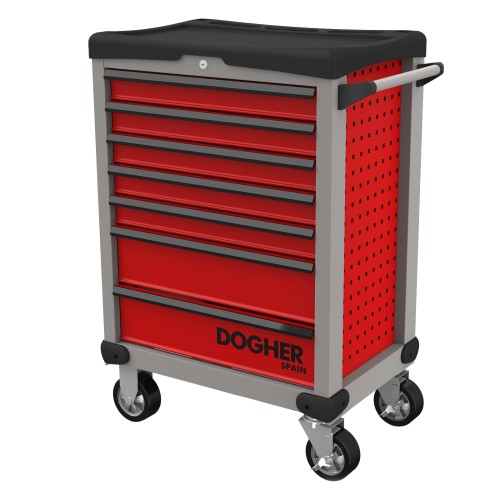 El Carro Profesional Dogher Jerez de 7 cajones es una solución robusta y segura para la organización de herramientas en talleres y entornos profesionales.