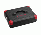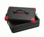 Caja organizadora diseñada para alojar bandejas de fraccionamiento de 1/4 y 1/2, ofreciendo una solución eficiente para el almacenamiento y transporte de piezas o herramientas.