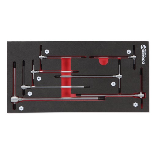 Incluye 7 llaves tipo T para tornillos hexagonales.