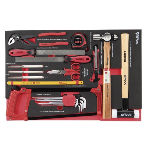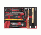 La bandeja combinable entera multiherramientas de 31 piezas está diseñada para organizar y tener a mano las herramientas esenciales en carros de taller.