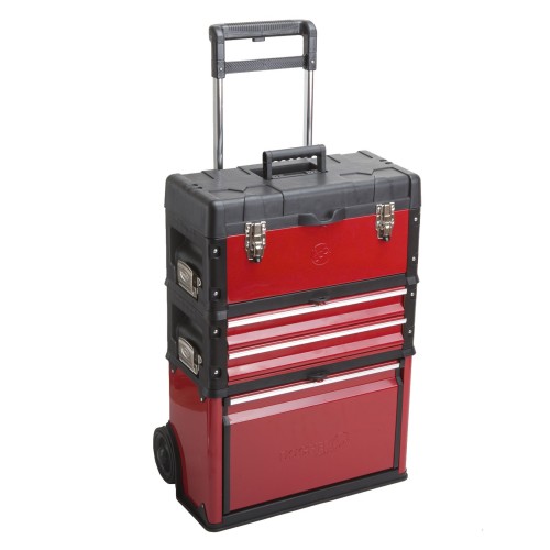 Carro de herramientas modular de tres módulos, diseñado para organizar y transportar utensilios de trabajo de forma eficiente.