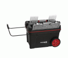 Caja de herramientas móvil con ruedas diseñada para ofrecer gran capacidad de almacenamiento y fácil transporte en entornos profesionales y domésticos.