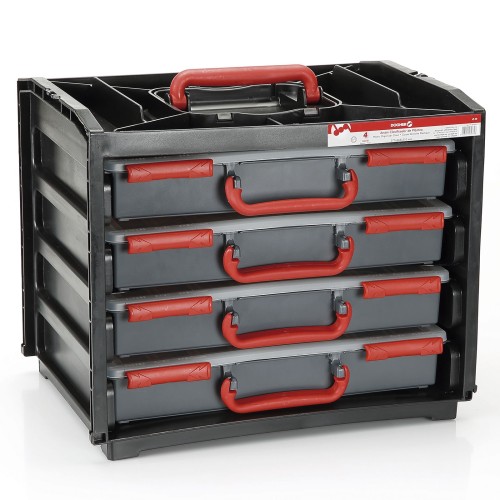 Arcon organizador fabricado en material resistente, ideal para el almacenamiento y transporte seguro de herramientas, accesorios o piezas pequeñas.
