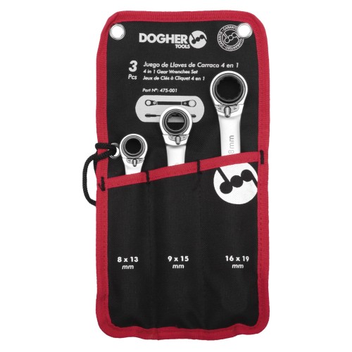 475-001V | BOLSA NYLON DOGHER 3 LLAVE DE CARRACA REVERSIBLE 4EN1 CrV VACIA