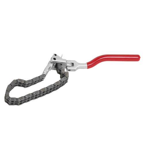 La llave de filtro doble cadena es una herramienta versátil y robusta diseñada para aflojar o apretar filtros de aceite de diferentes tamaños.