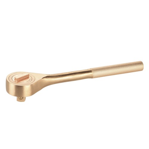 Llave de carraca reversible antichispa con accionamiento de 3/4", especialmente diseñada para su uso en entornos con riesgo de explosión o presencia de materiales inflamables.