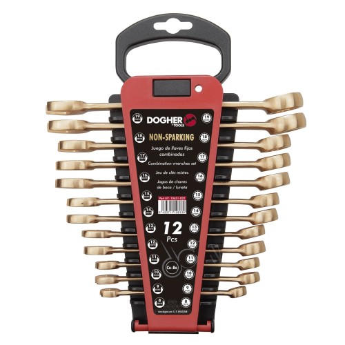 Juego de 12 llaves combinadas fabricadas en aleación antichispa para entornos con riesgo de explosión.
