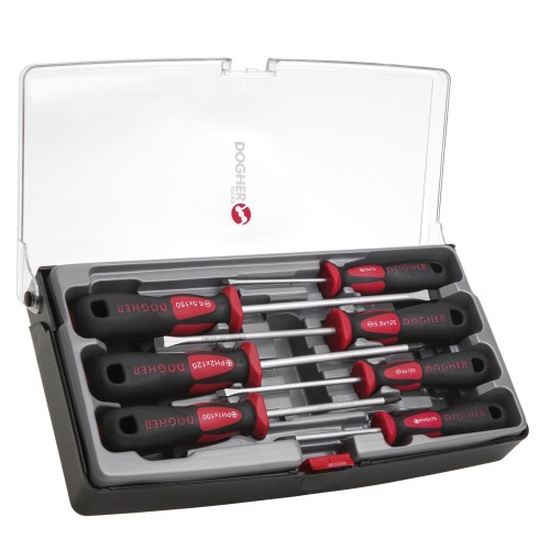 Incluye 4 destornilladores de punta plana y 3 Phillips, cubriendo las necesidades más comunes de apriete y afloje.