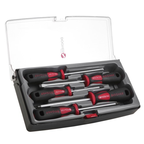 Composición del juego: Incluye 2 destornilladores de punta plana y 3 de punta Pozidriv para cubrir las necesidades más comunes.