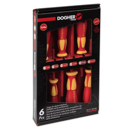 Este juego de 6 destornilladores profesionales aislados VDE está diseñado para trabajos en instalaciones eléctricas con total seguridad.