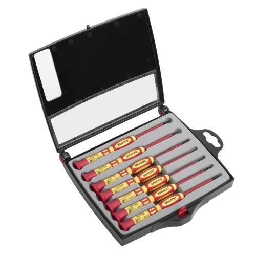 Juego de 7 destornilladores profesionales de precisión aislados VDE, diseñados para trabajos eléctricos con total seguridad.