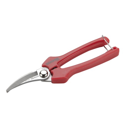 Tijera diseñada especialmente para la vendimia y la recolección agrícola, fabricada en acero inoxidable de alta calidad.