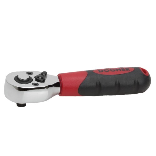 Llave de carraca reversible de perfil corto con cuadradillo de 1/4”, ideal para trabajar en espacios reducidos donde el acceso es limitado.