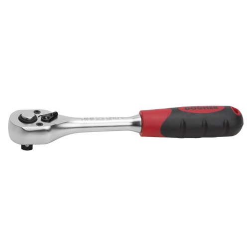 Llave carraca reversible de 1/2 pulgada con mecanismo interno de 72 dientes, ideal para trabajos que requieren precisión en espacios reducidos.