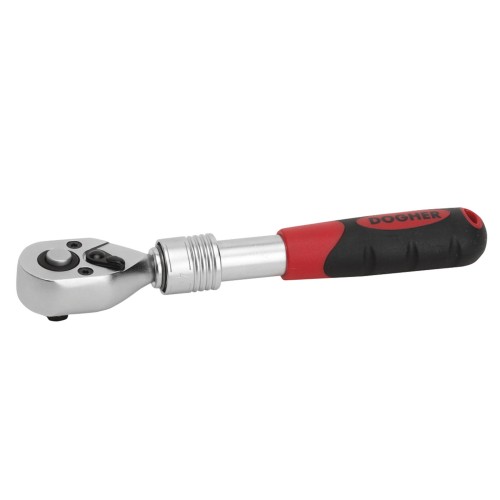 Llave carraca extensible reversible de 1/2" con mecanismo de 72 dientes que permite un ajuste preciso incluso en espacios reducidos.