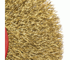 Cepillo circular diseñado para trabajos de limpieza y desbaste en superficies metálicas, gracias a su construcción en acero latonado de alta resistencia.