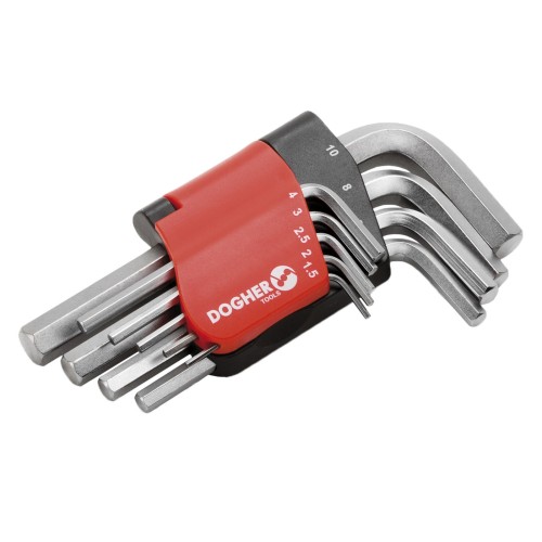 Juego de 9 llaves macho hexagonal fabricadas en acero cromo vanadio para una mayor resistencia y durabilidad.