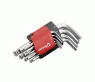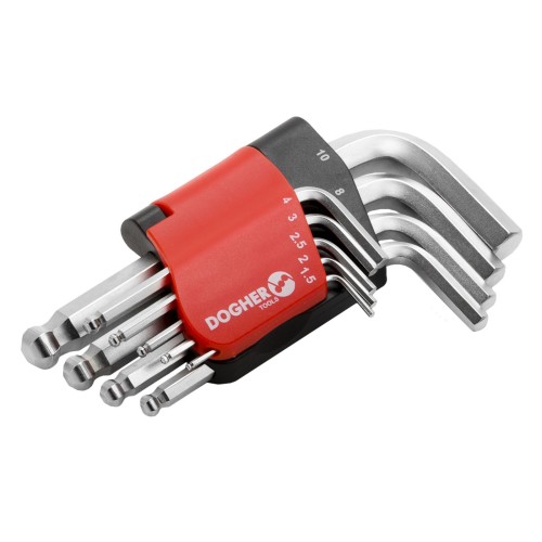 Juego de 9 llaves macho hexagonales redondas de medida corta, fabricadas en acero al cromo vanadio (CrV) para ofrecer una excelente resistencia y durabilidad.
