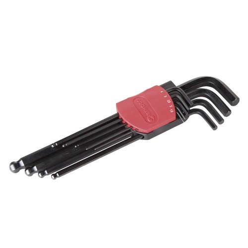 • Juego de 9 llaves macho hexagonal redonda extra larga.