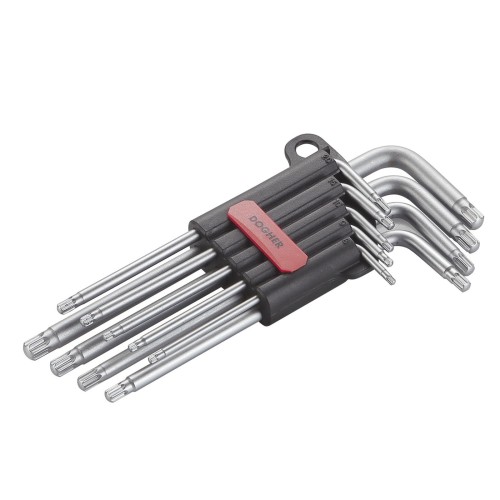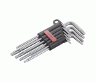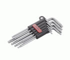 Juego de 9 llaves macho tipo Torx fabricadas en acero cromo vanadio de alta resistencia.