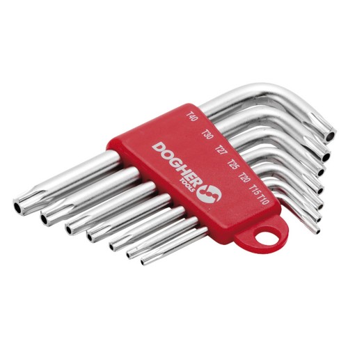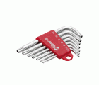 Juego de 7 llaves macho tipo Torx de seguridad fabricadas en acero cromo vanadio (CrV) de alta resistencia.
