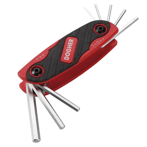 Juego de llaves macho hexagonales tipo navaja de la marca DOGHER Tools, fabricadas en acero cromo vanadio (CrV) de alta resistencia.