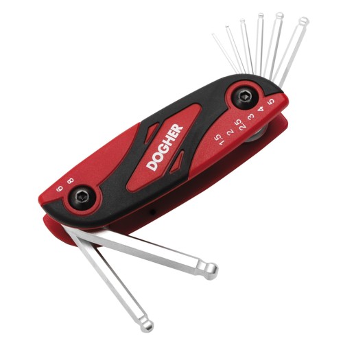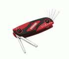 Juego compacto de 8 llaves macho hexagonales tipo navaja fabricadas en acero cromo vanadio de alta resistencia.