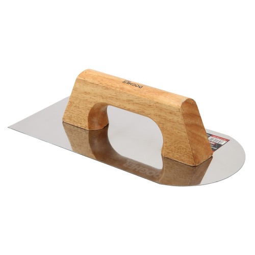 La llana media luna de acero inoxidable con mango de madera es una herramienta de alto rendimiento diseñada para profesionales de la construcción.