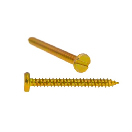 El tornillo de rosca chapa DIN 7971 con cabeza ancha ranurada y acabado bicromatado está diseñado para ofrecer una excelente sujeción en materiales metálicos delgados, plásticos duros o maderas blandas.