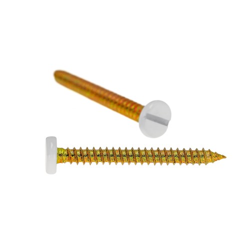 La ranura en la cabeza permite su accionamiento con destornilladores planos, asegurando una instalación práctica y efectiva.