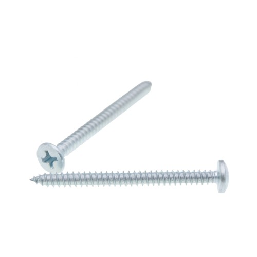 El tornillo rosca chapa DIN-7981 con cabeza alomada y entalla PHILLIPS PH-1 es ideal para fijaciones en materiales metálicos y plásticos delgados, proporcionando un ajuste firme y duradero.