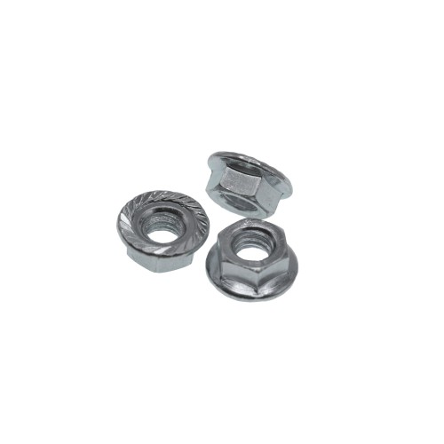 La tuerca métrica DIN 6923 estriada cincada es un componente de fijación diseñado para aplicaciones que requieren una unión segura y resistente a la vibración.