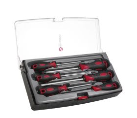 330-004 | JUEGO 7 DESTORNILLADOR PROFESIONAL DOGHER BOCA PLANA POZIDRIV CAJA PLASTICO